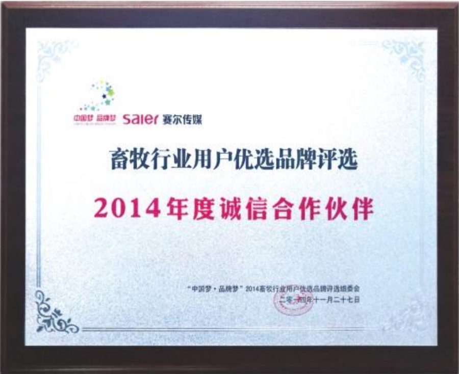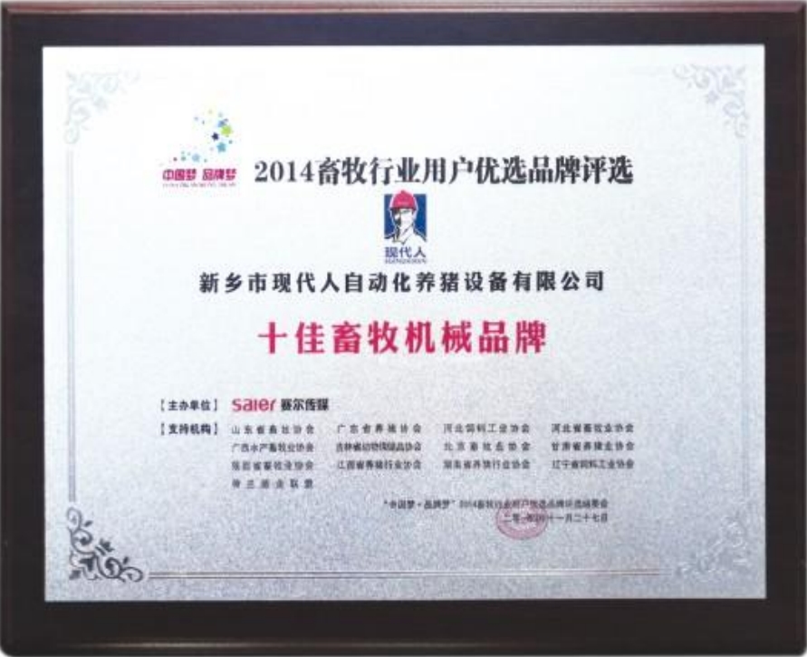 The company has been rated as honest partner,"Top 10 Animal Husbandry Machinery Brands" and "Top 10 Scientific andTechnological lntelligent Animal Husbandry Equipment Brands" by Saiermedia.